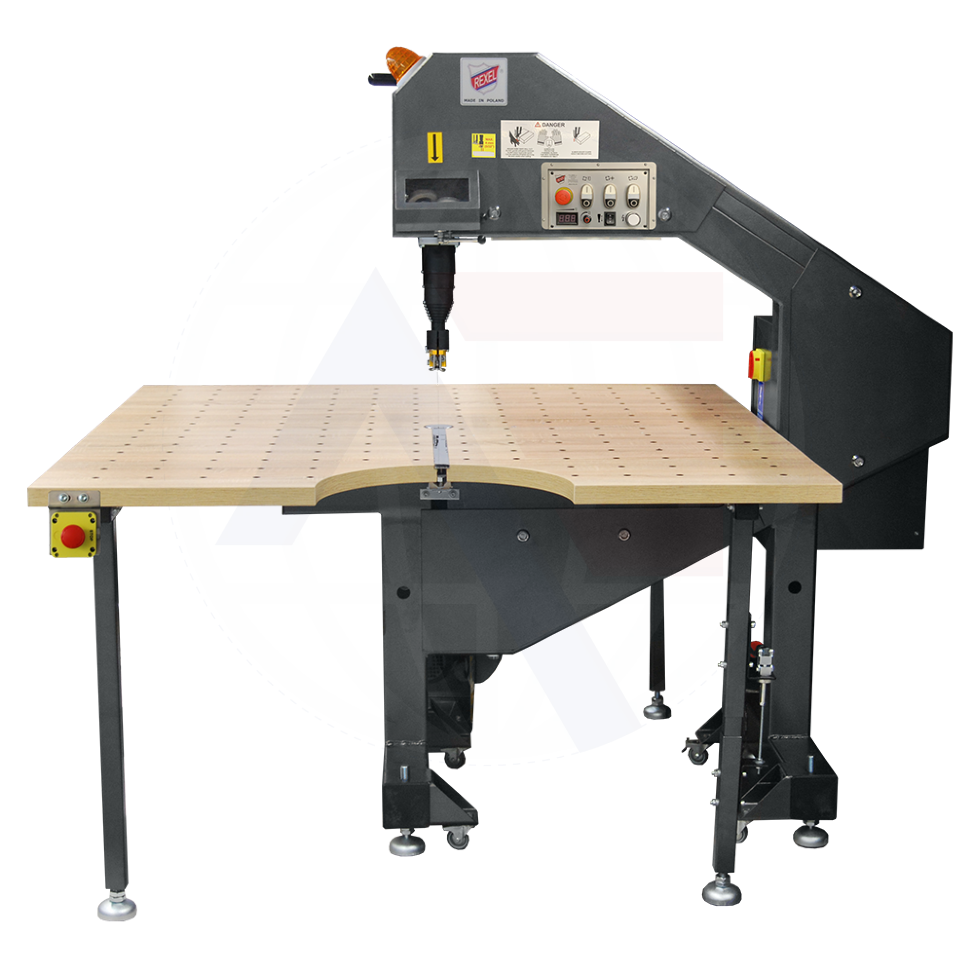 - All machines are equipped with a mechanical band catcher and the panels are protected with end switchers.