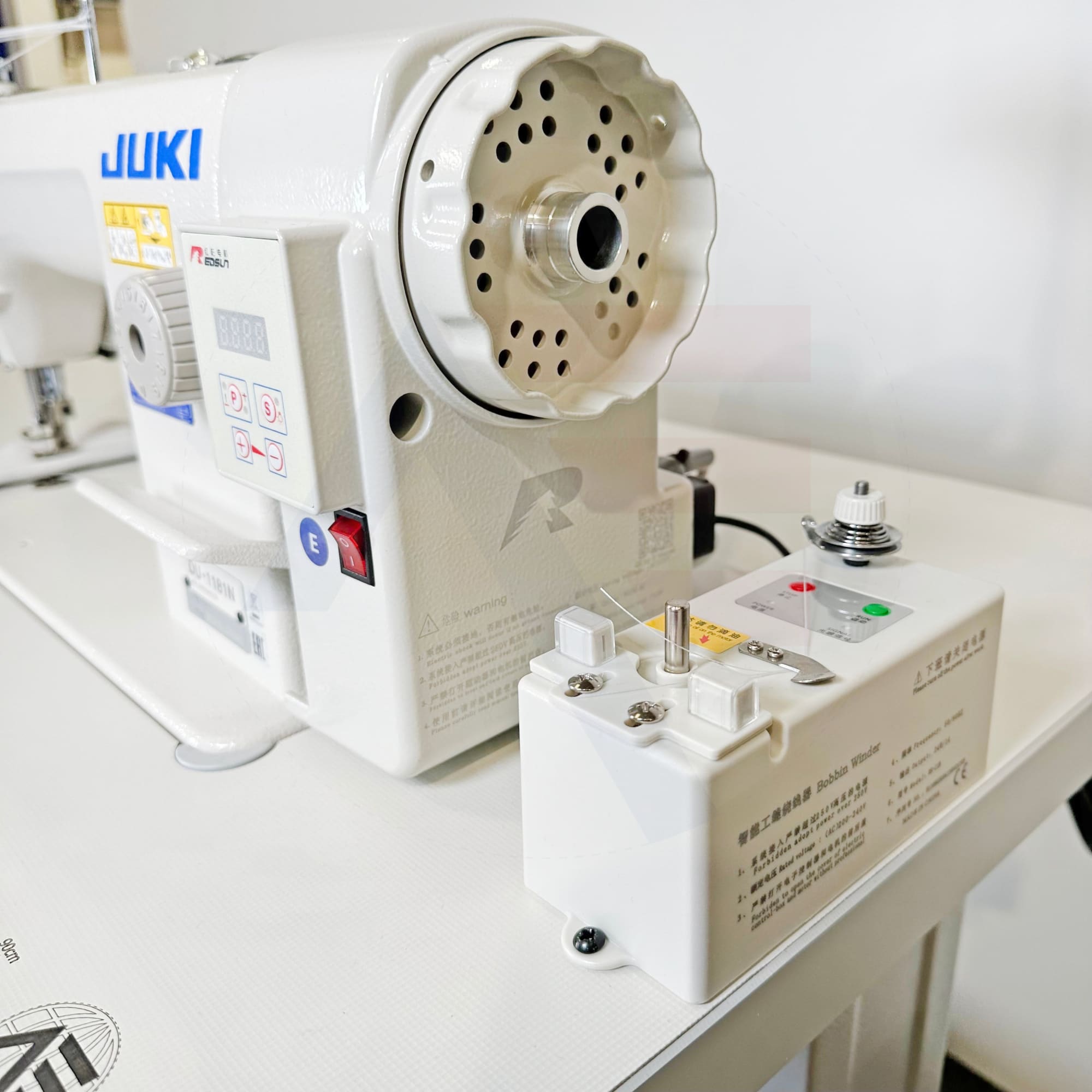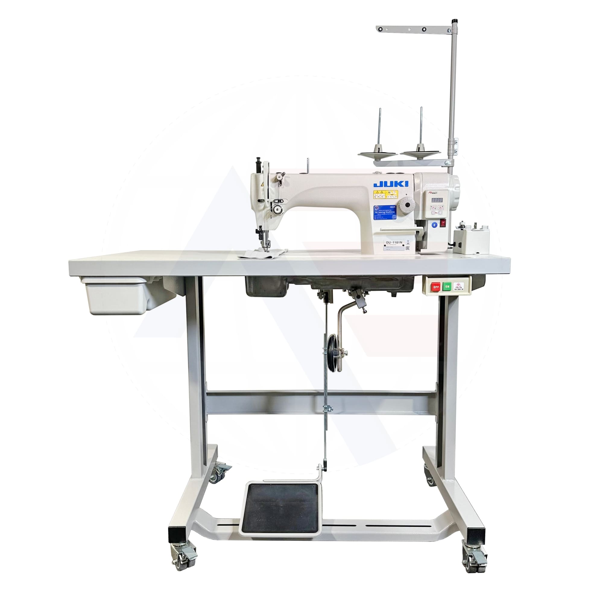 The Juki DU-1181N is a 1-needle, top and bottom-feed lockstitch machine with double-capacity hook. This machine is supplied fully assembled, complete with British RU/C wheeled stand, manufacturer grade tabletop, drawer & extras. Before dispatch, everything is tested and sewn off which means once delivered you just need to wheel into place, thread it up and you're ready to get sewing!