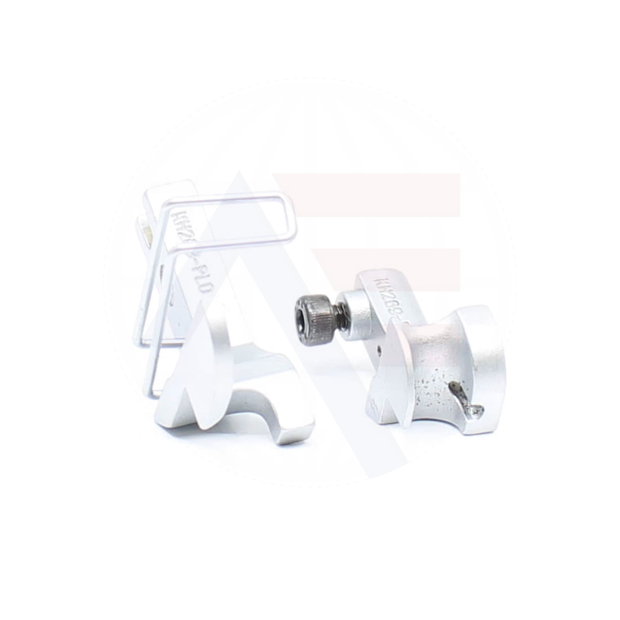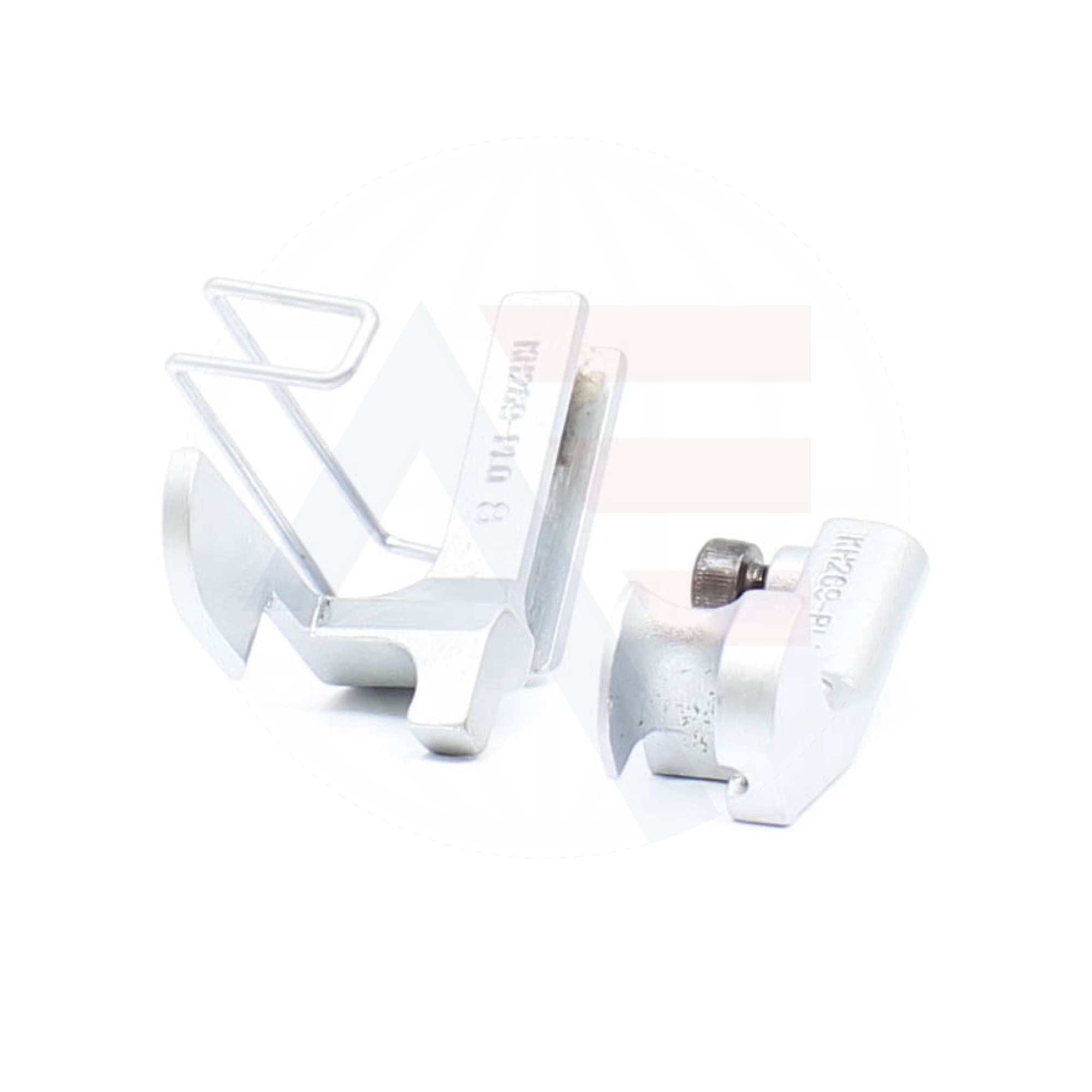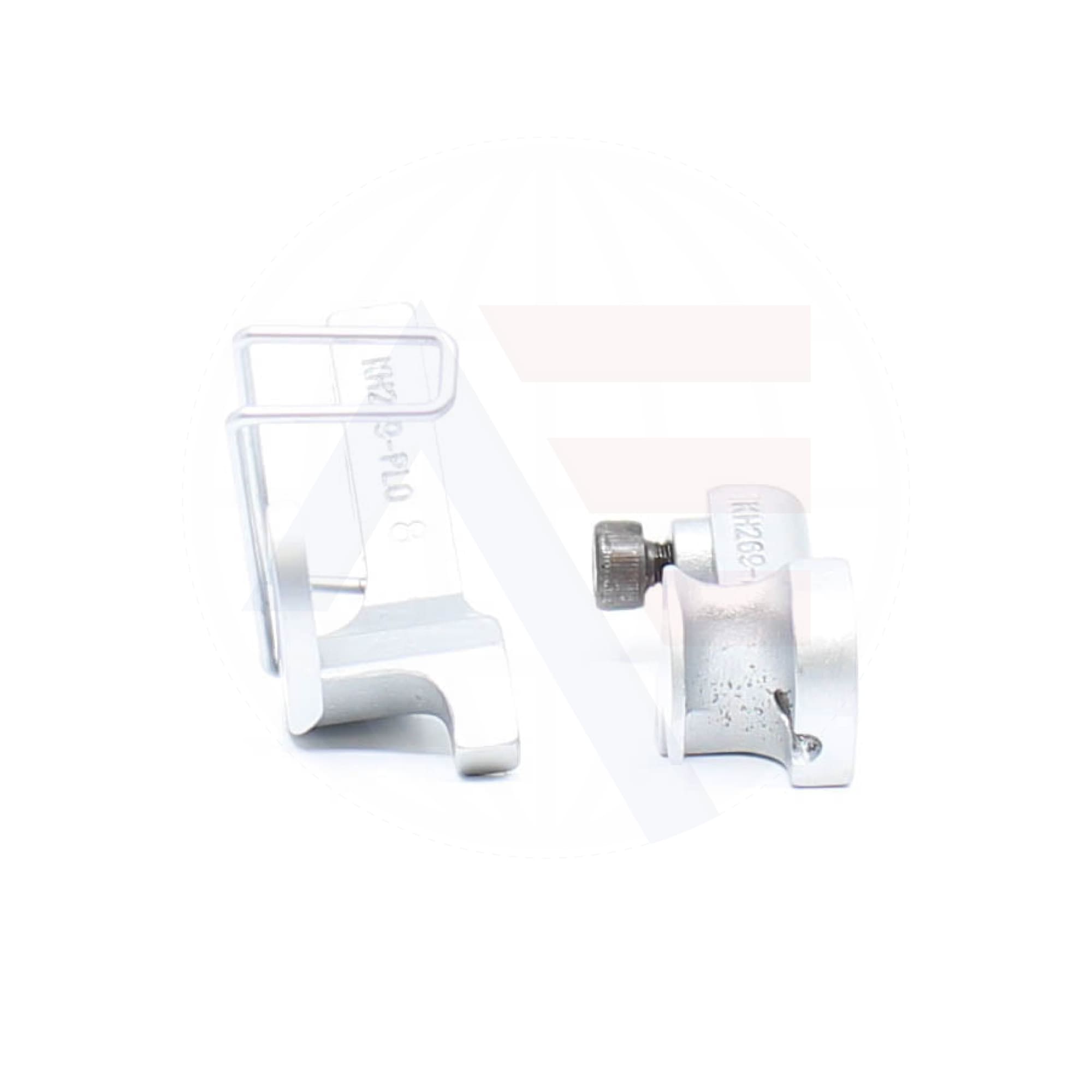 KH269PL 8mm piping foot set, includes the inner and outer foot with a piping groove on the left of the needle. Suitable for use with Durkopp Adler 67, 167, 267, 68, 69, 169, and 269 machines.