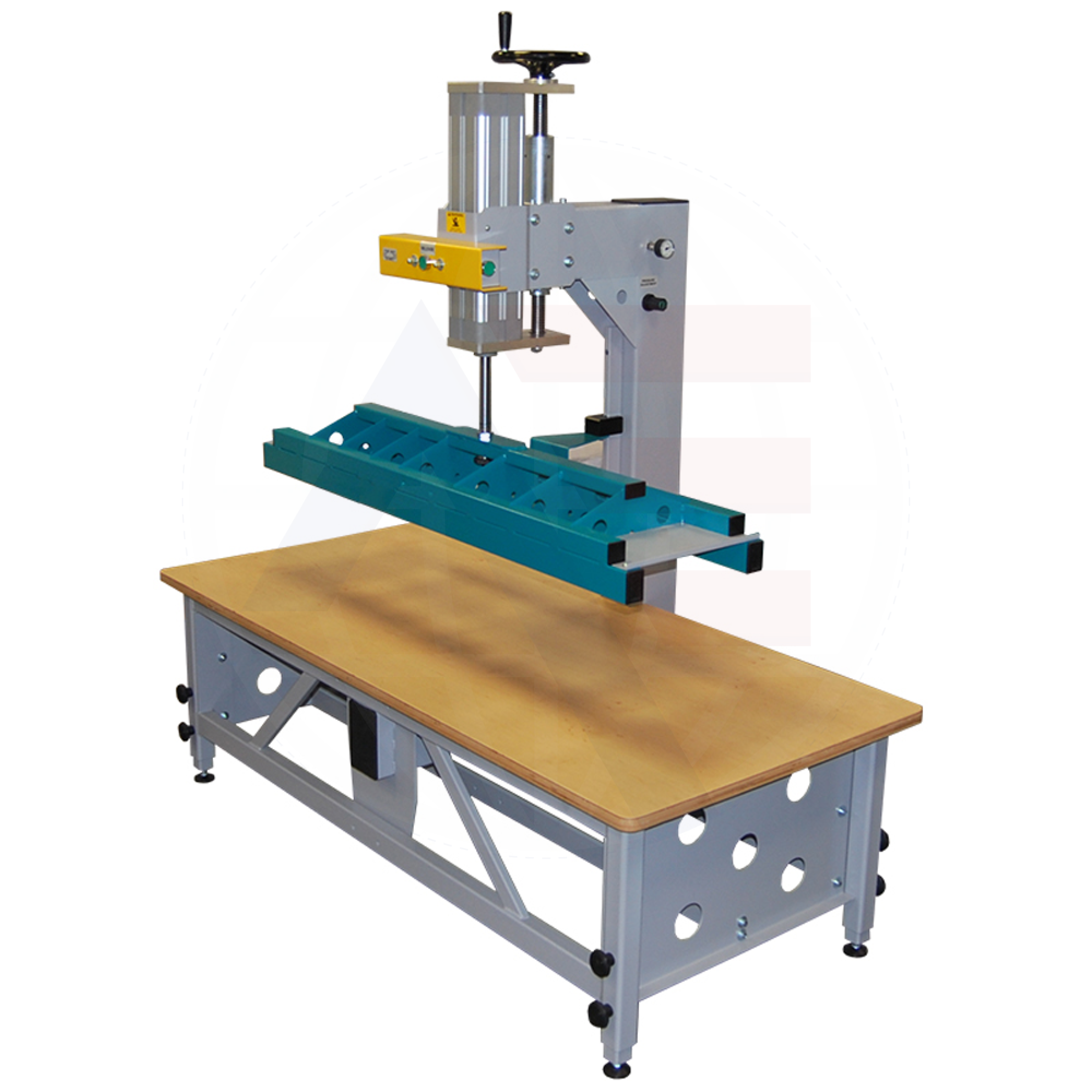 - Using pneumatic cylinder with a screw system and a hand wheel allows one to accurately adjust the desired compression force. Pressing force is indicated on the operating pressure regulator, mounted on the head of the press.