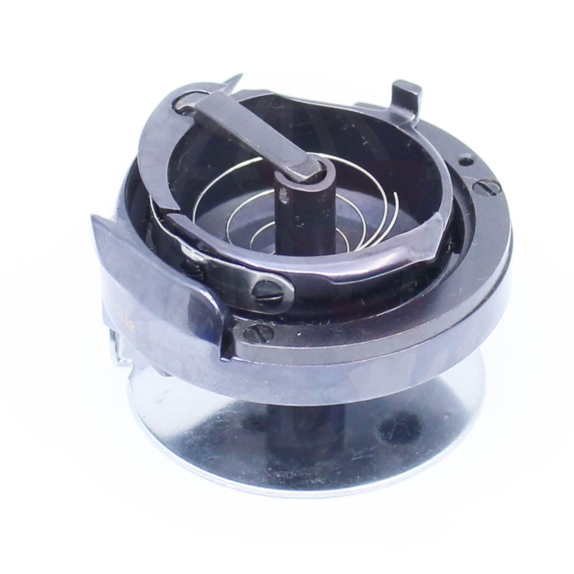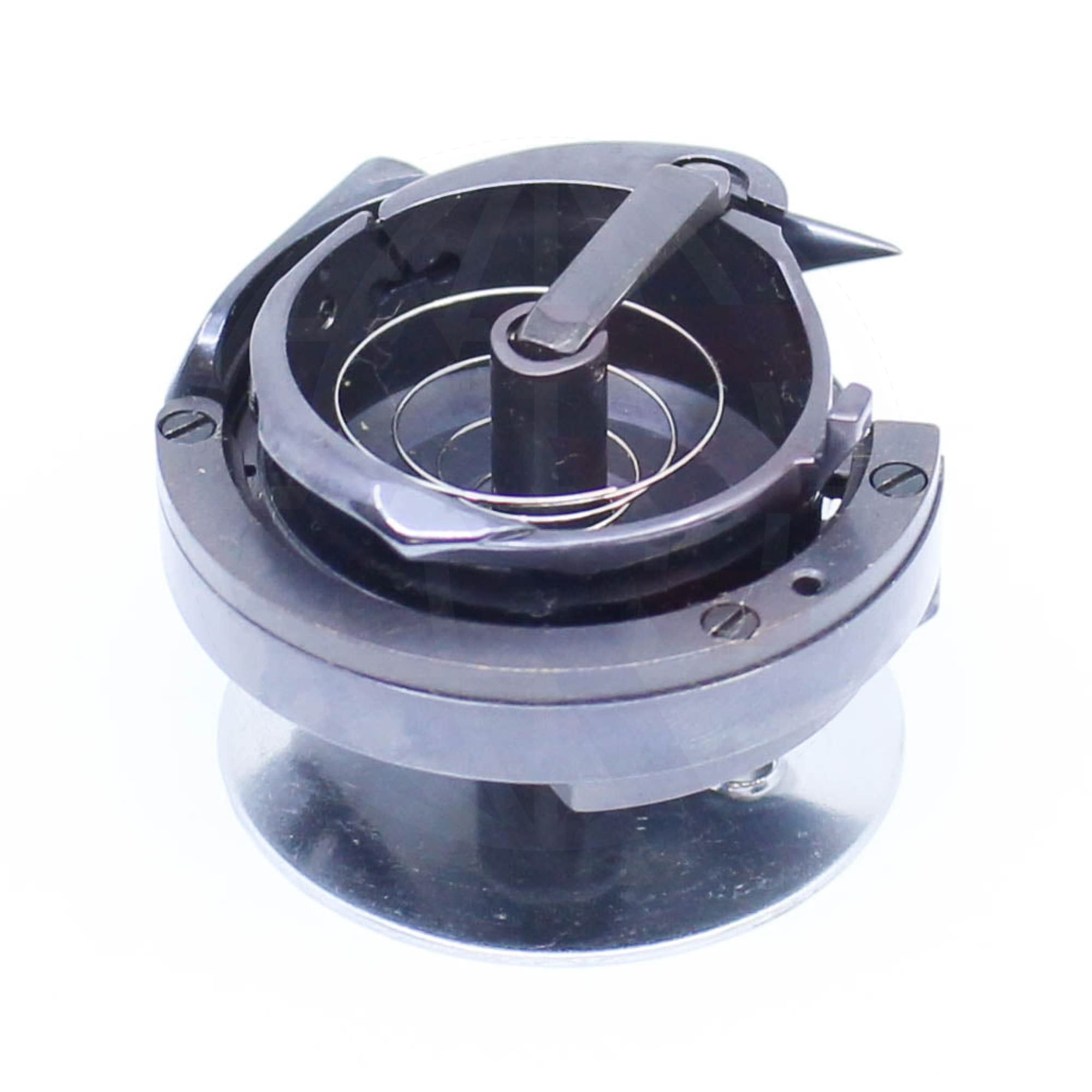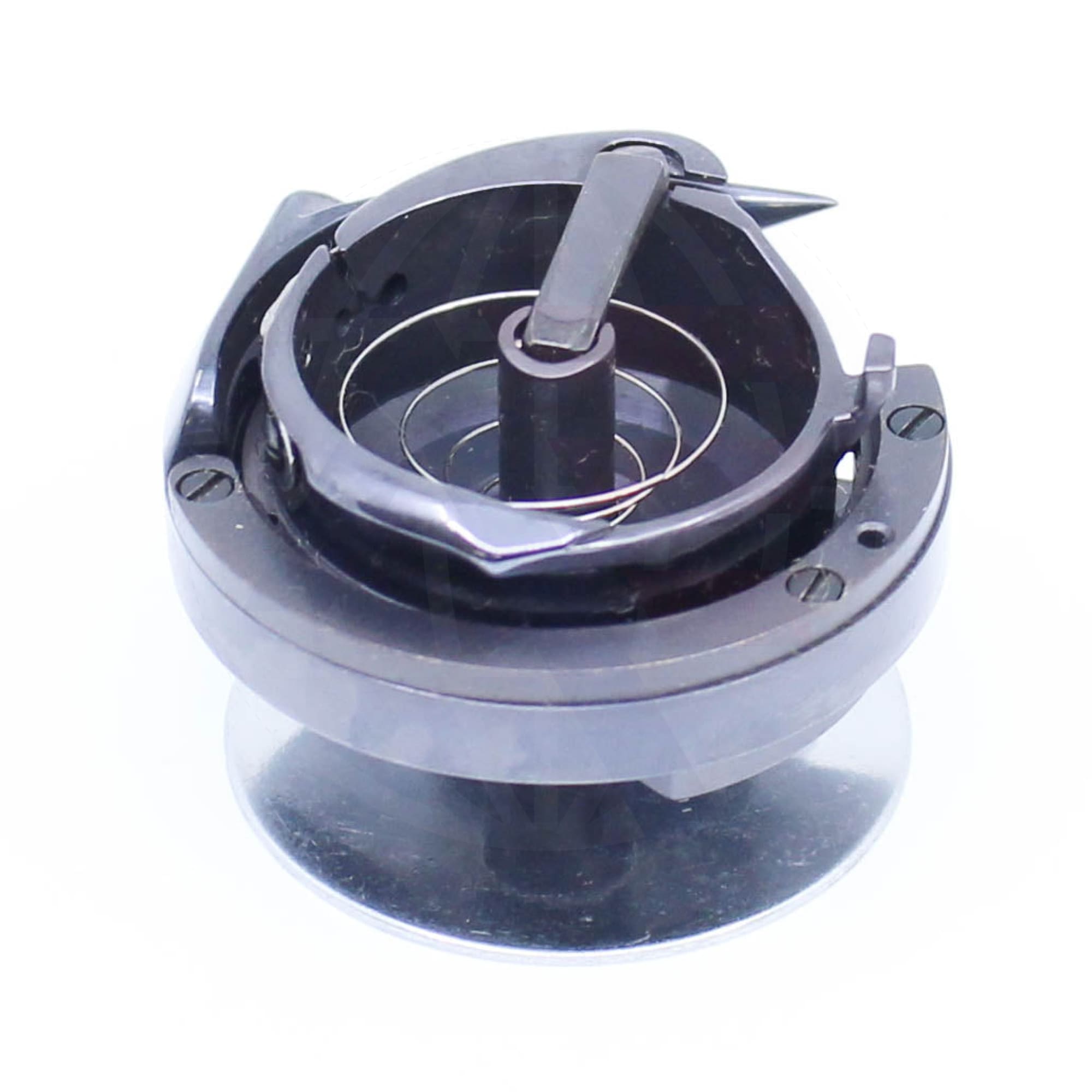 Universal 768151834C hook and base for use with Durkopp Adler 768 machines with an under bed thread trimmer. This assembly has a DLC carbon film coating.