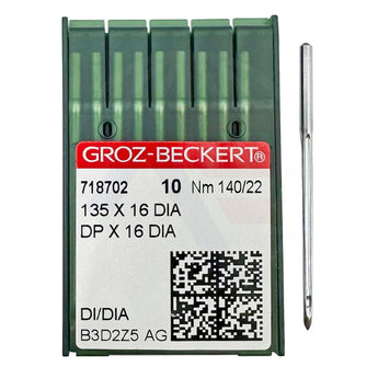 Groz-Beckert 135X16 DIA (diamond point) size 140 industrial sewing machine needles in a pack of 10.