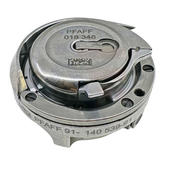 Genuine Pfaff 9114053991 non-trimmer hook and base complete with bobbin case cap for use with Pfaff industrial sewing machine models 1245 and 1445. For the bobbin case cap only use part number CPHPF545.