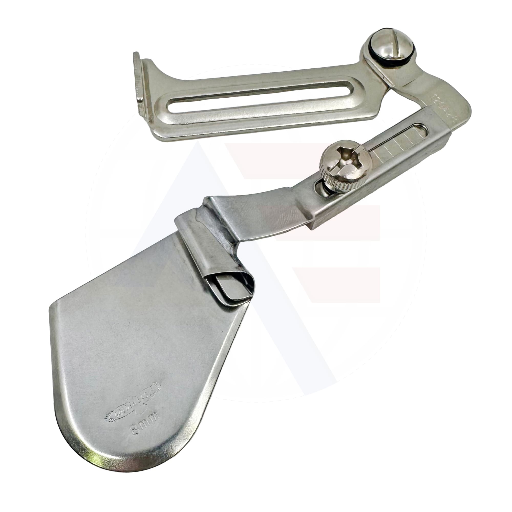 Complete J-type double upturn hemmer A11x8mm on swing out bracket. Use with feet S542x1/2 or S538.